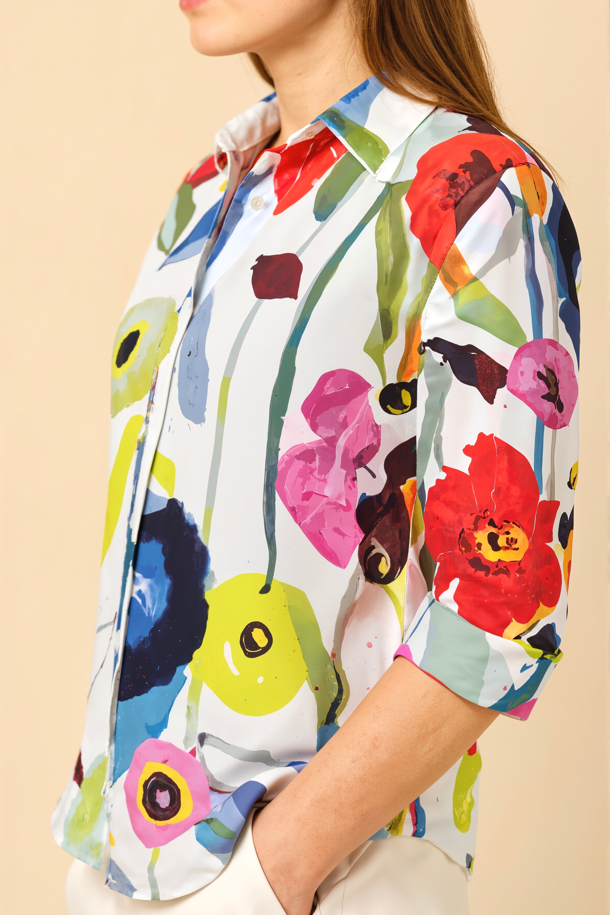 Make your outfit a masterpiece with this Watercolor Floral Shirt Top, where art and fashion collide in a wash of color and confidence. Painted with bold strokes of expressive blooms, this shirt captures the beauty of spontaneity and the freedom of individuality.