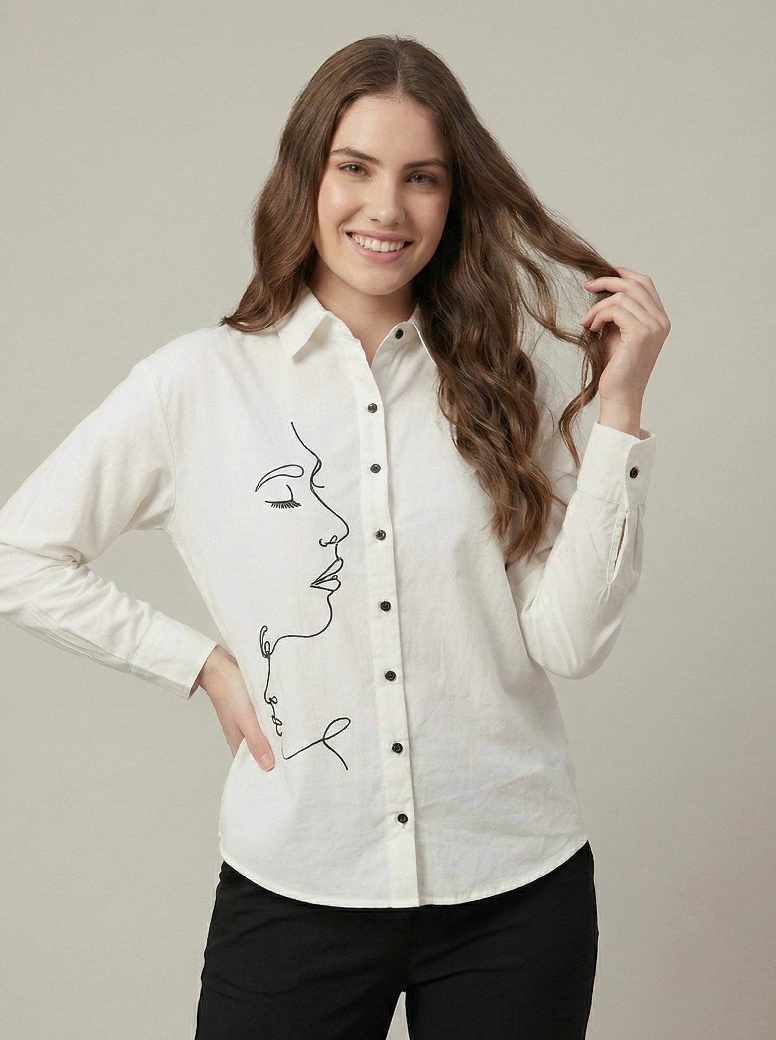 Face Forward: Line Art Embroidered Shirt