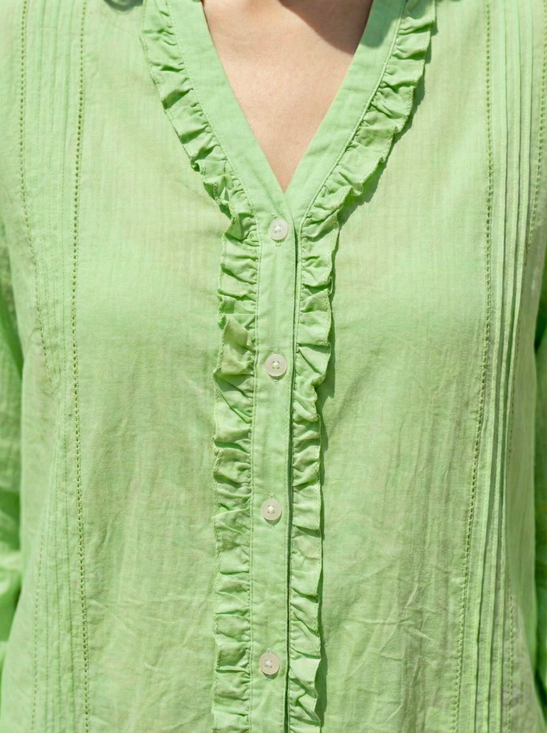 Women’s Solid Lime Green Shirt with Pintuck Details & Ruffled Placket