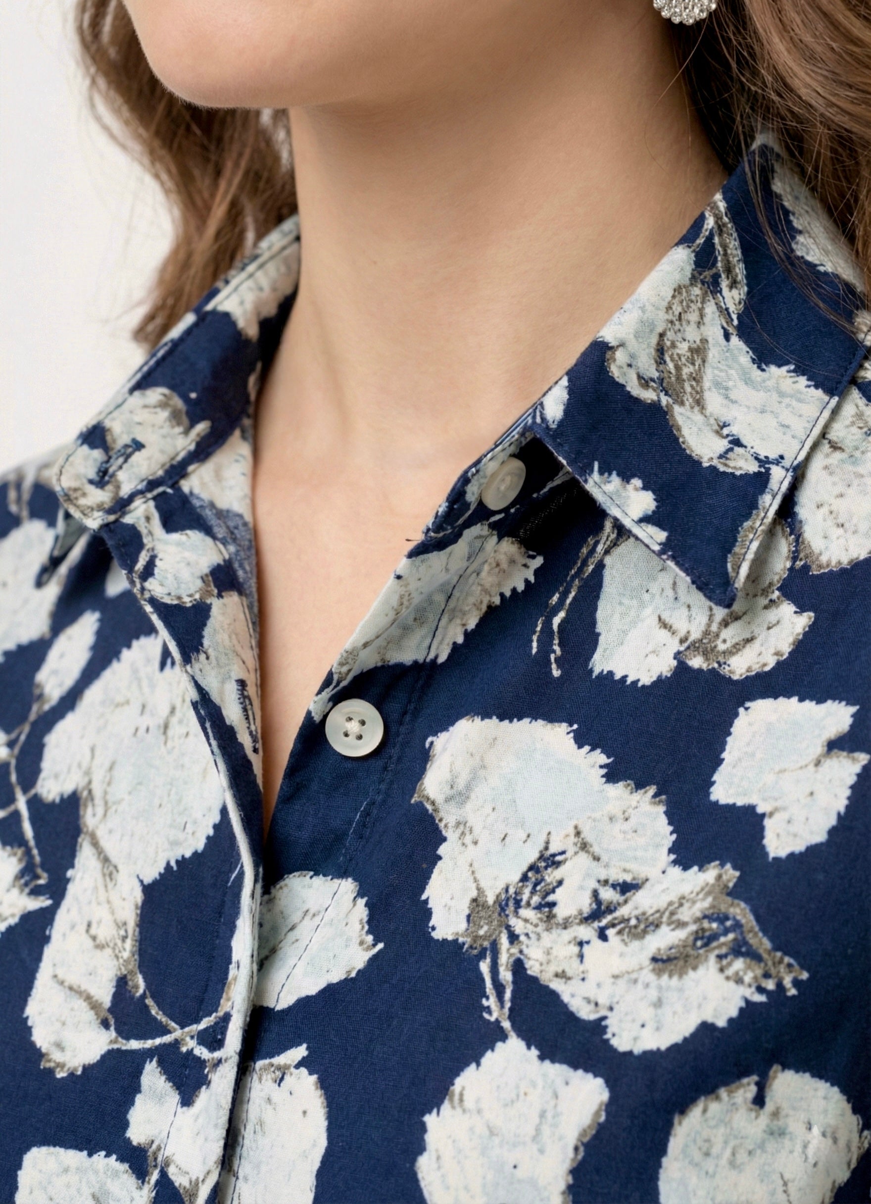 Noir Bloom Abstract Floral Midi Shirt Dress