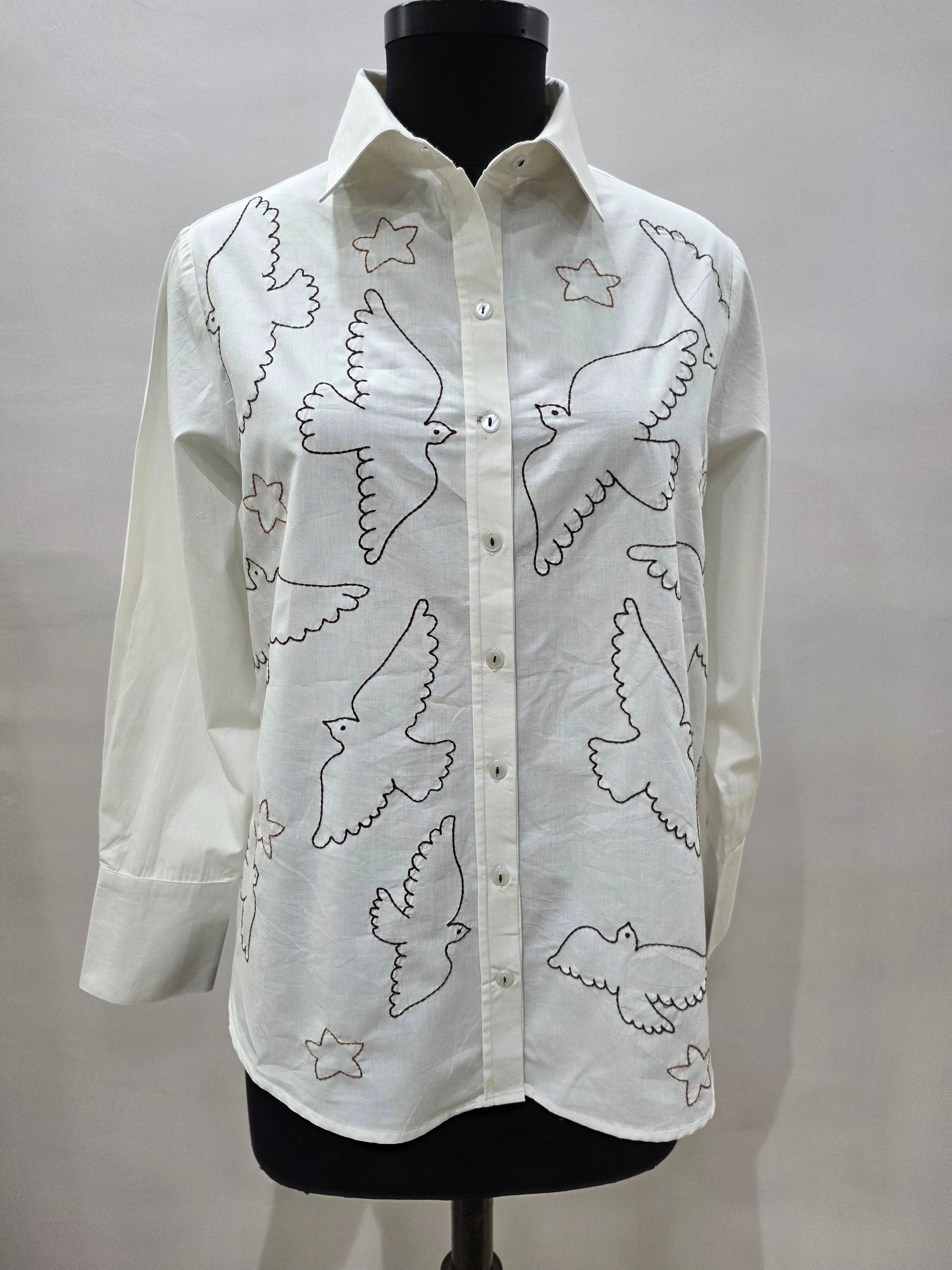 Skybound Doves: Embroidered Shirt (Make on Order)