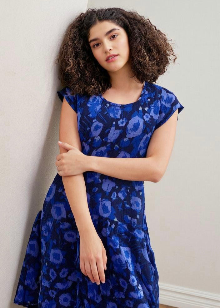 Featuring a vibrant print that celebrates vitality, this dress is your go-to for wherever life takes you—whether it’s a slow brunch, an impromptu work meet, or a well-deserved evening out. The soft scoop neckline and delicate cap sleeves frame your femininity with elegance, while the A-line silhouette flows freely, flattering every curve and every stride.